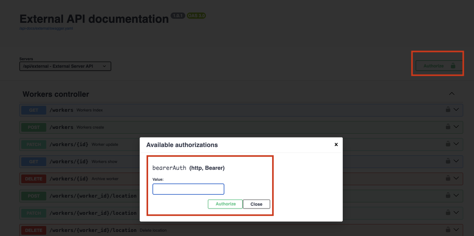 Eens je deze hebt aangemaakt dan kan je op onze API documentatie site jezelf eerst authoriseren: