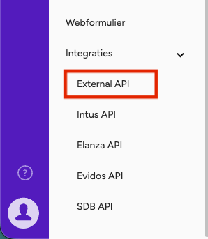 Hier kan je jouw Externe API code genereren.